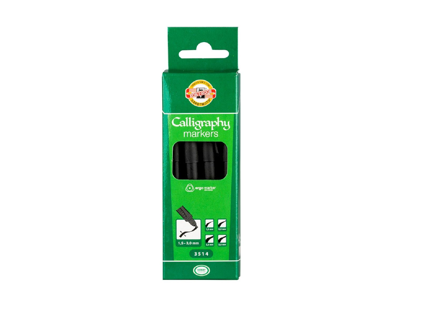 Vrh im je klinastog oblika, a dolaze u četiri dimenzije 1-1,5, 1-2,0, 1-2,5 i 1-3,0 mm. Tinta je otporna na svjeto.