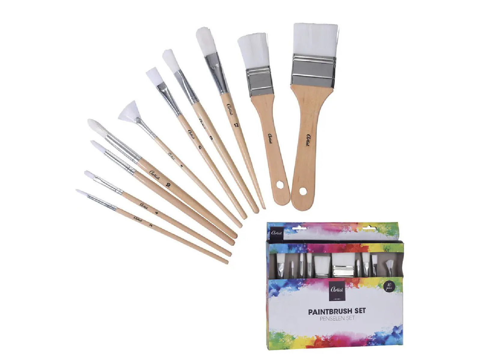 Slikarski kistovi set Artist – oživite svoje umjetničko stvaralaštvo uz set slikarskih kistova! Ovaj prekrasan set od 10 komada kistova različitih veličina savršen je dodatak kolekciji umjetnika ili hobista. Slikarski kistovi su pogodni za korištenje raznih medija i tehnika slikanja.