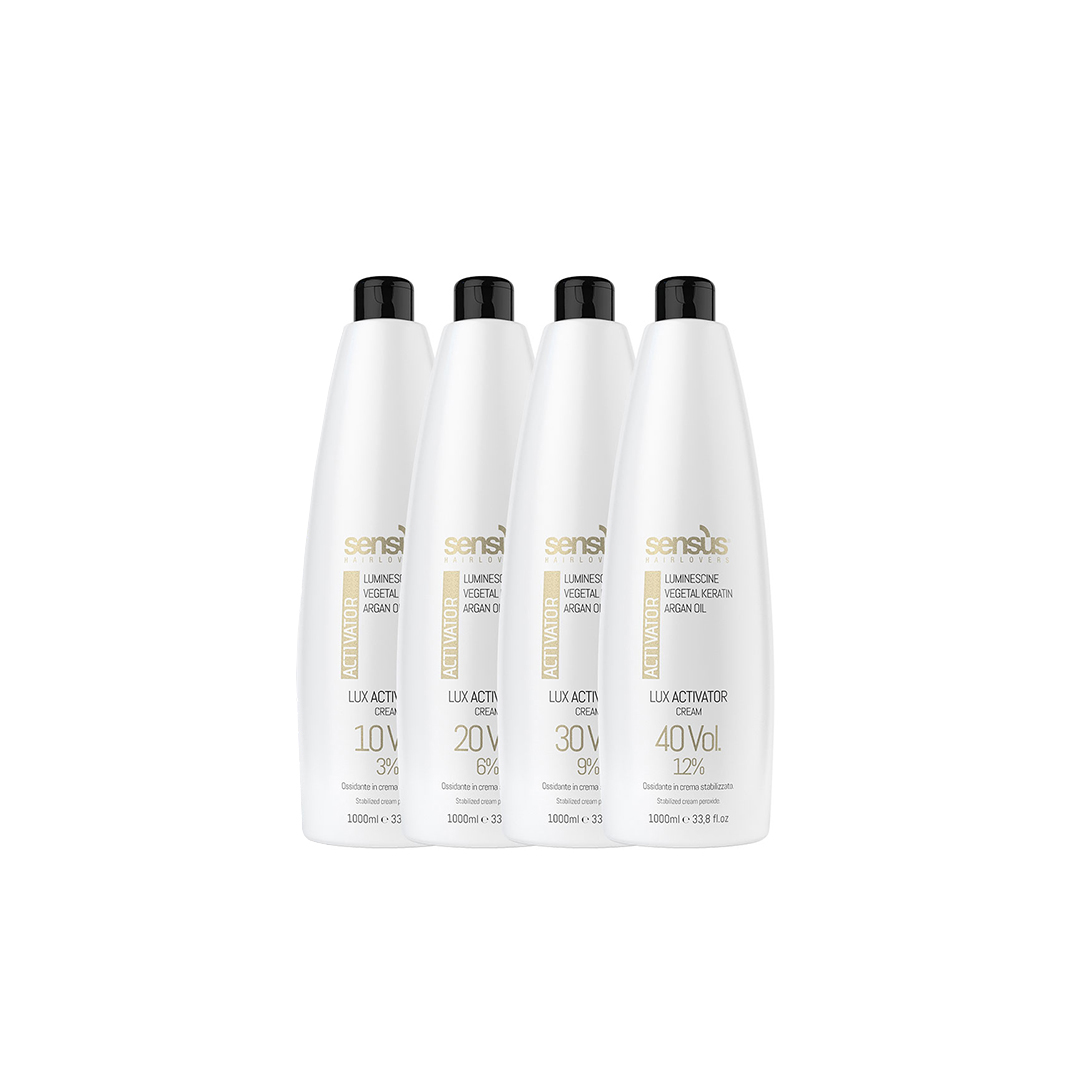 Sens’us Lux Activator stabilizirana je oksidacijska krema obogaćena inovativnim aktivnim sastojcima poput Luminescina®, biljnog keratina i arganovog ulja. Tekstura aktivatora izuzetno je podatna za miješanje, a specifična kremasta formula štiti i njeguje kosu. Bogata, kremasta tekstura pomaže lakšem apliciranju boje i prodiranju pigmenata u kosu. Patentirani sastojak Luminescin® daje boji izuzetan sjaj.