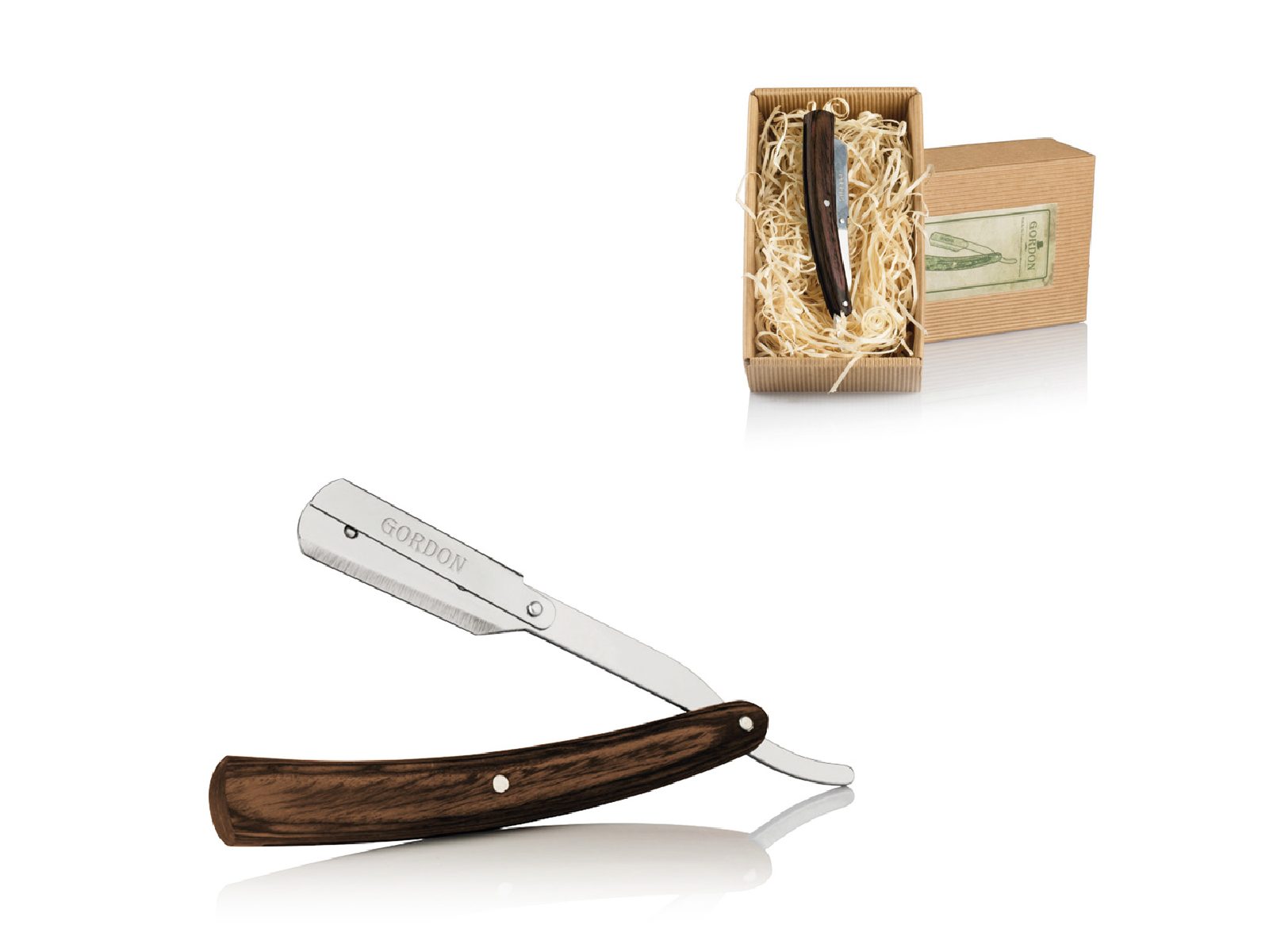 Britva Gordon je britva za brijanje i izbrijavanje s drvenom drškom i klasičnim polu-nožem.