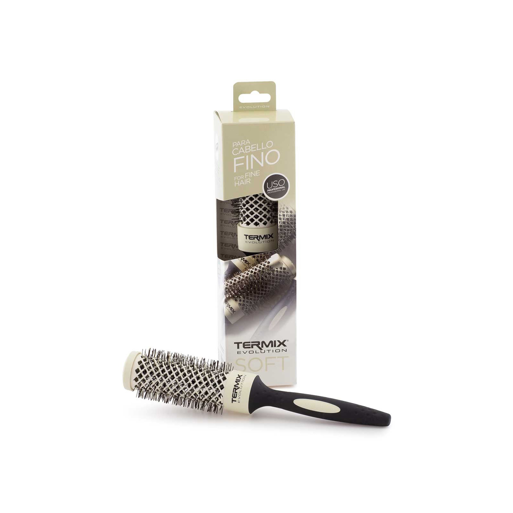 Četka za kosu Termix Evolution Soft posebno je dizajnirana za njegu tanke kose s tendencijom lakog pucanja. Budući da je ova vrsta dlake krhka, potrebno je mekše vlakno kako bi se omogućilo bolje prijanjanje dlake na četki, a izbjeglo bilo kakvo lomljenje. Dakle, četka za kosu Evolution Soft jedina je dizajnirana da spriječi lomljenje kose i pogoršanje vlasi kose zbog svog unakrsnog sustava ioniziranih najlonskih čekinja tankog promjera i mikrofilamenata u bež boji. Ovaj sustav omogućuje bolji zahvat bez oštećenja kose i pruža učinak povećane gustoće kapilara.