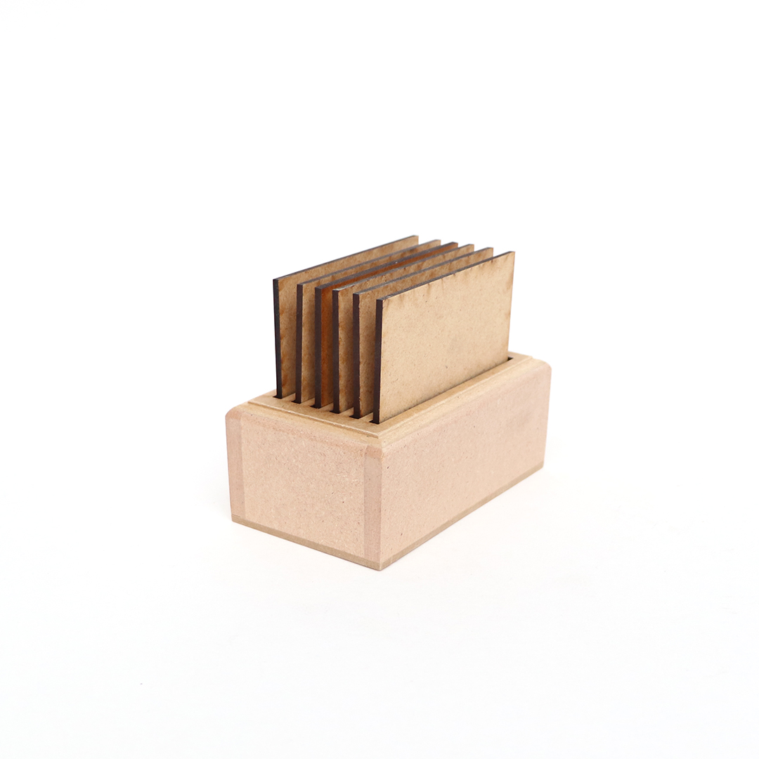 MDF stalak sa 6 kvadratnih podmetača s dimenzija 9,5 cm.