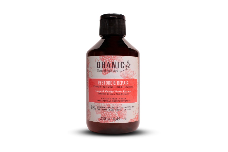 Obnovite svoju kosu uz šampon za obnovu kose s ekstraktom grožđa i cvijeta naranče. Šampon sadrži prirodne sastojke koji blagotvorno djeluju na suhu i oštećenu kosu. Šampon je nježan prema vlasištu jer ne sadrži sulfate, bojila, silikon, PEG-S, mineralne soli niti parafin pa je pogodan i za one koji imaju osjetljivo vlasište. Također je odličan za održavanje ekstenzija. Šampon ima prekrasan, svjež miris cvijeta naranče.